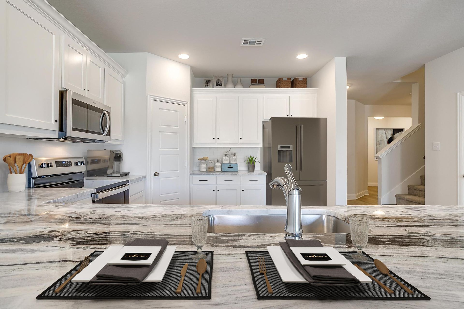 The interior selections are high quality and chosen by our design team. You will find granite or quartz countertops, custom painted cabinets, kitchen backsplash, stainless appliances, beautiful tile selections, plush carpet in bedrooms and vinyl plank flooring throughout the main areas.